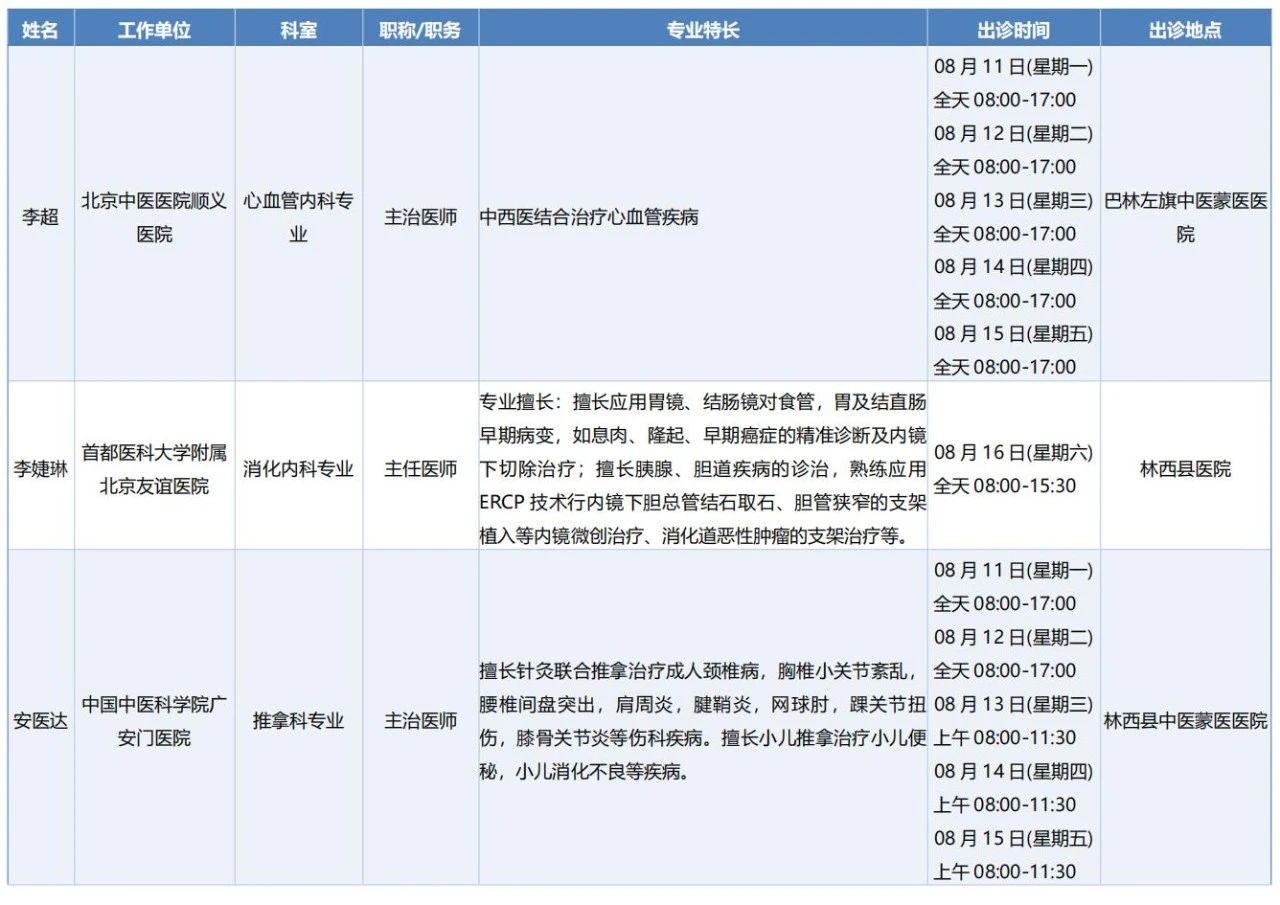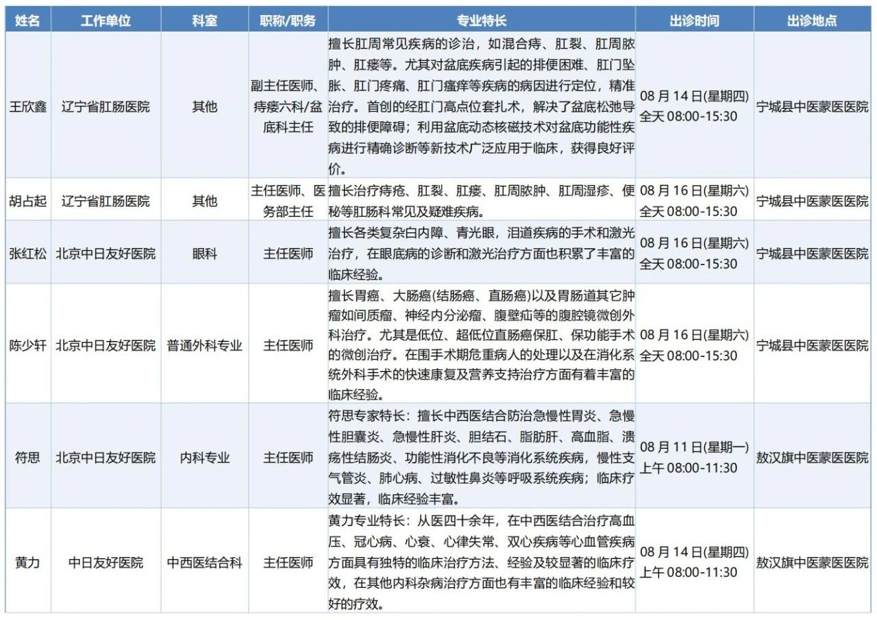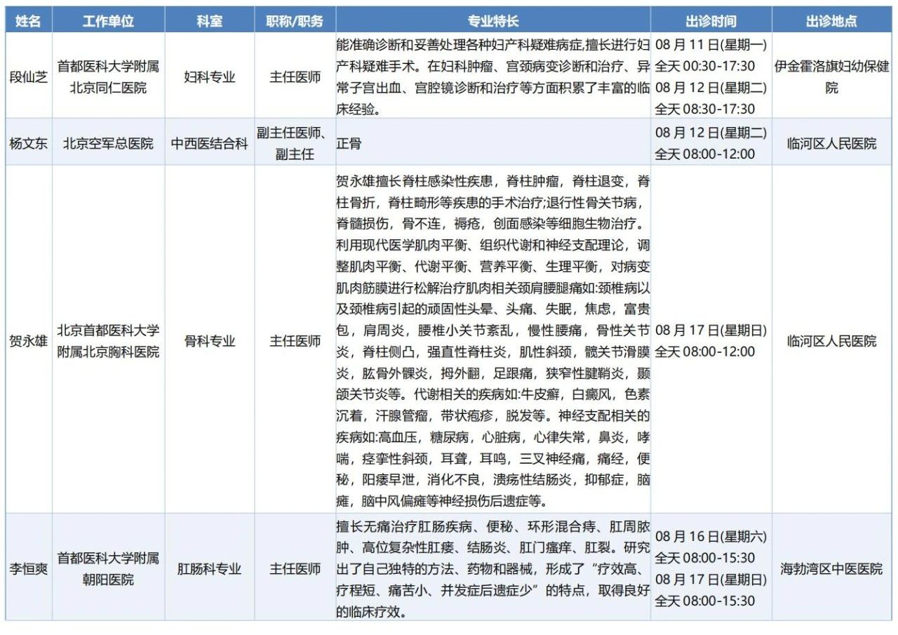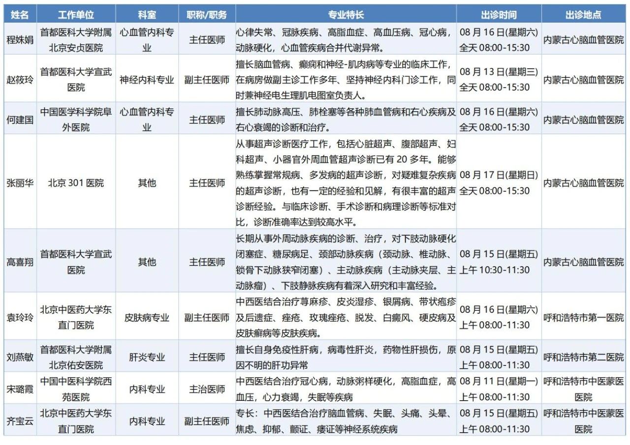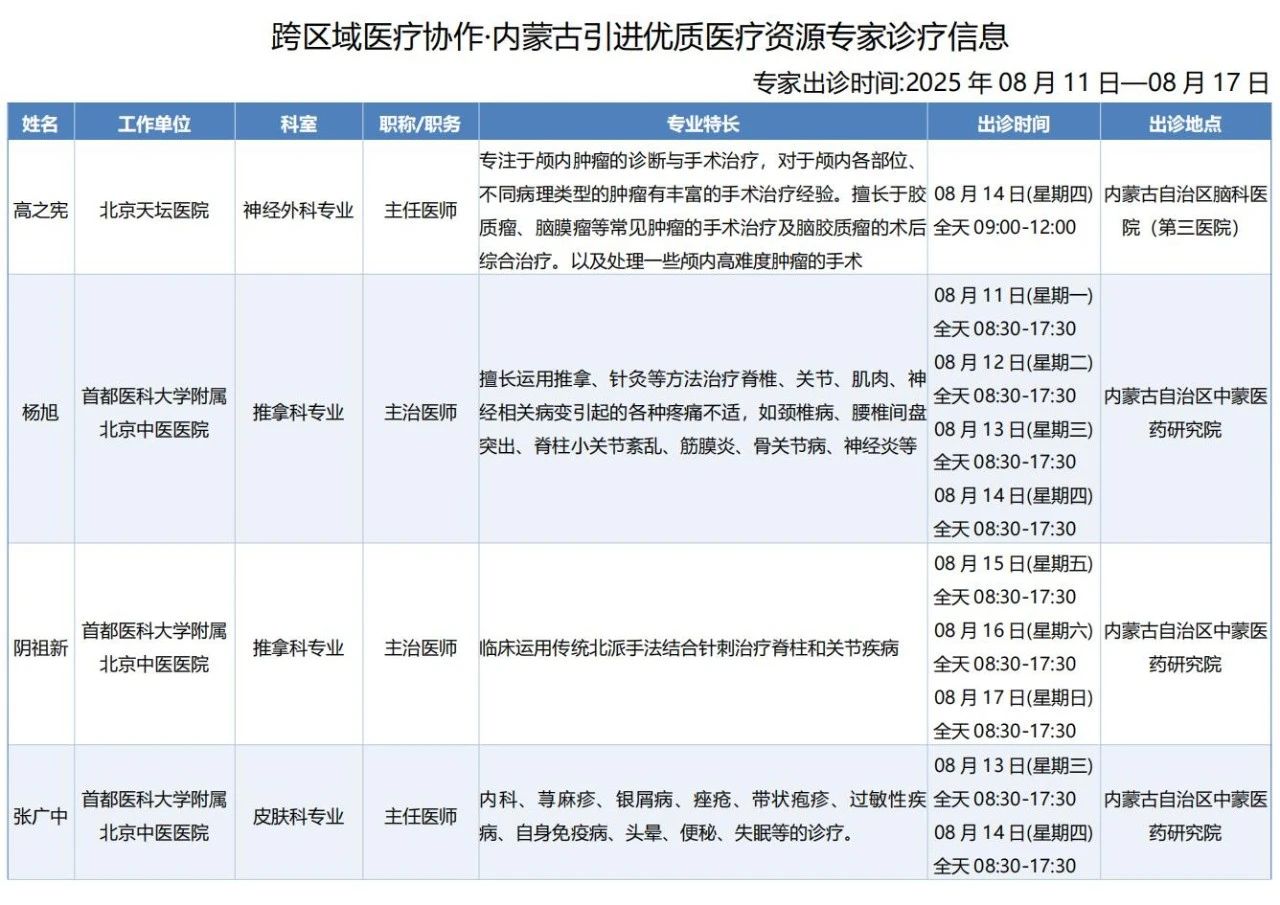 跨区域医疗协作-内蒙古引进优质医疗资源专家诊疗信息