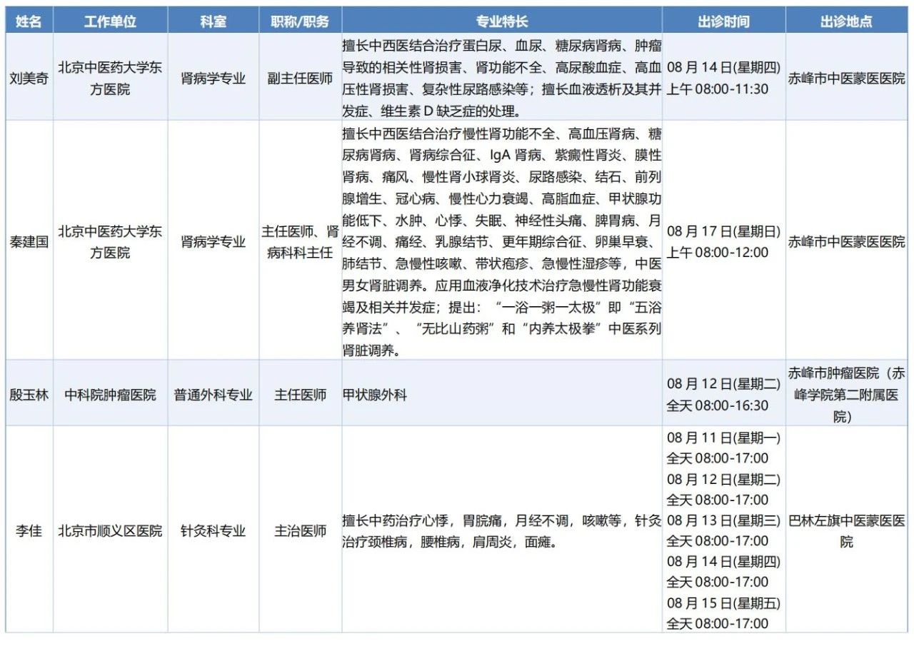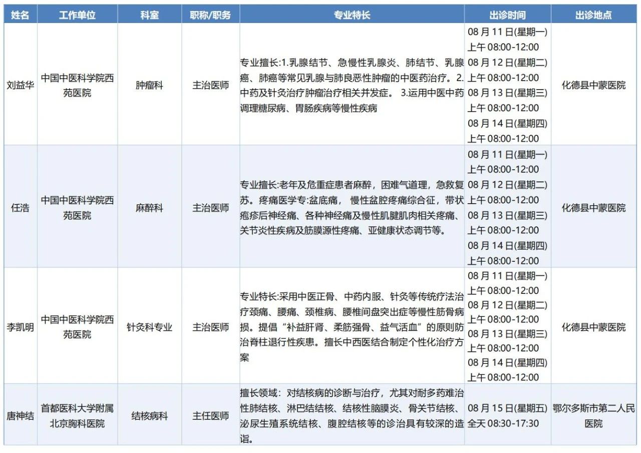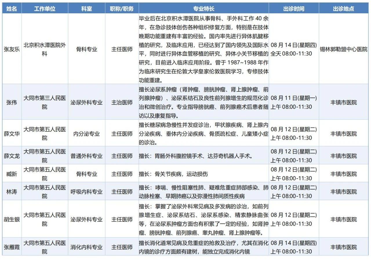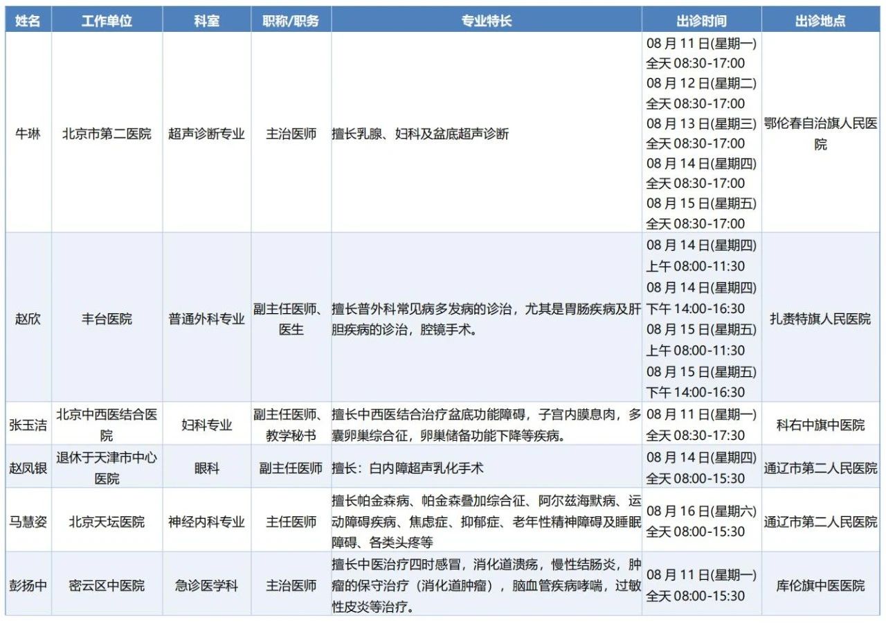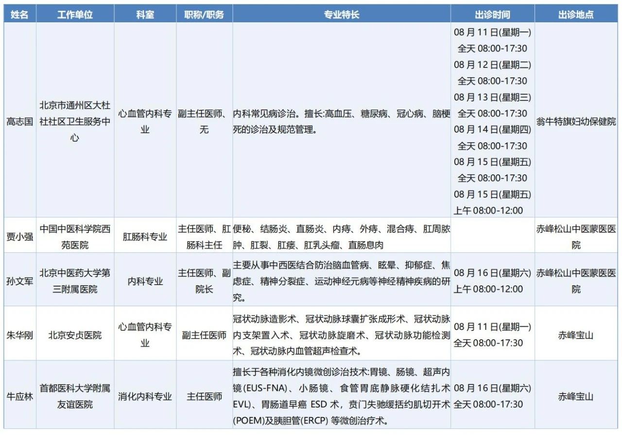 跨区域医疗协作-内蒙古引进优质医疗资源专家诊疗信息