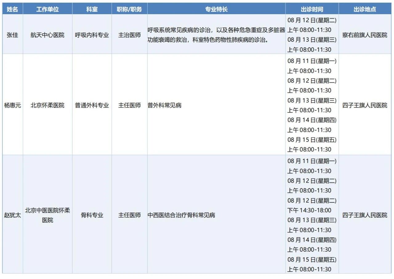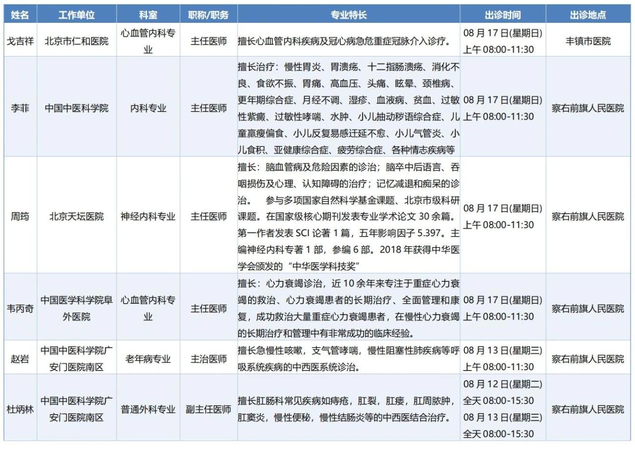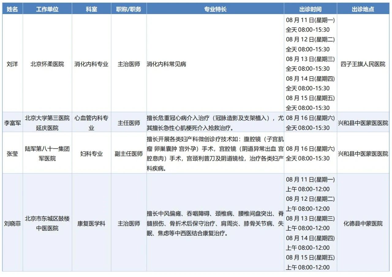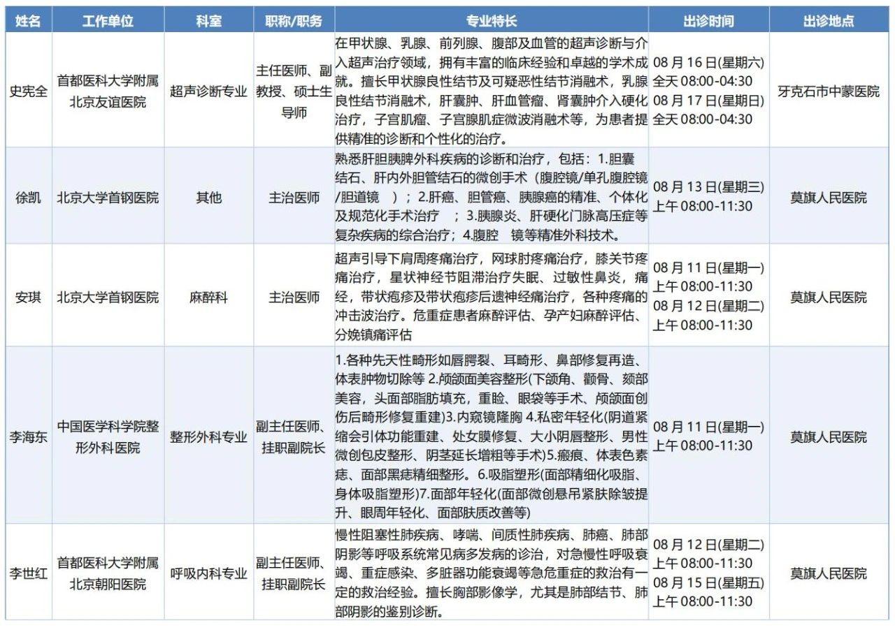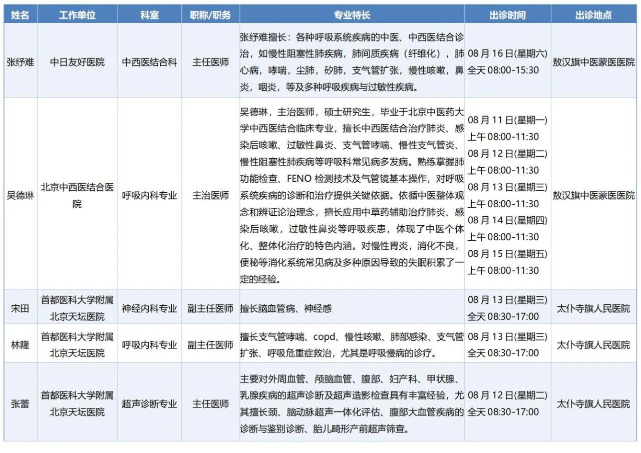 跨区域医疗协作-内蒙古引进优质医疗资源专家诊疗信息