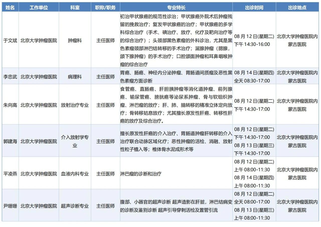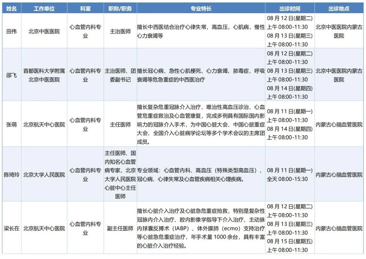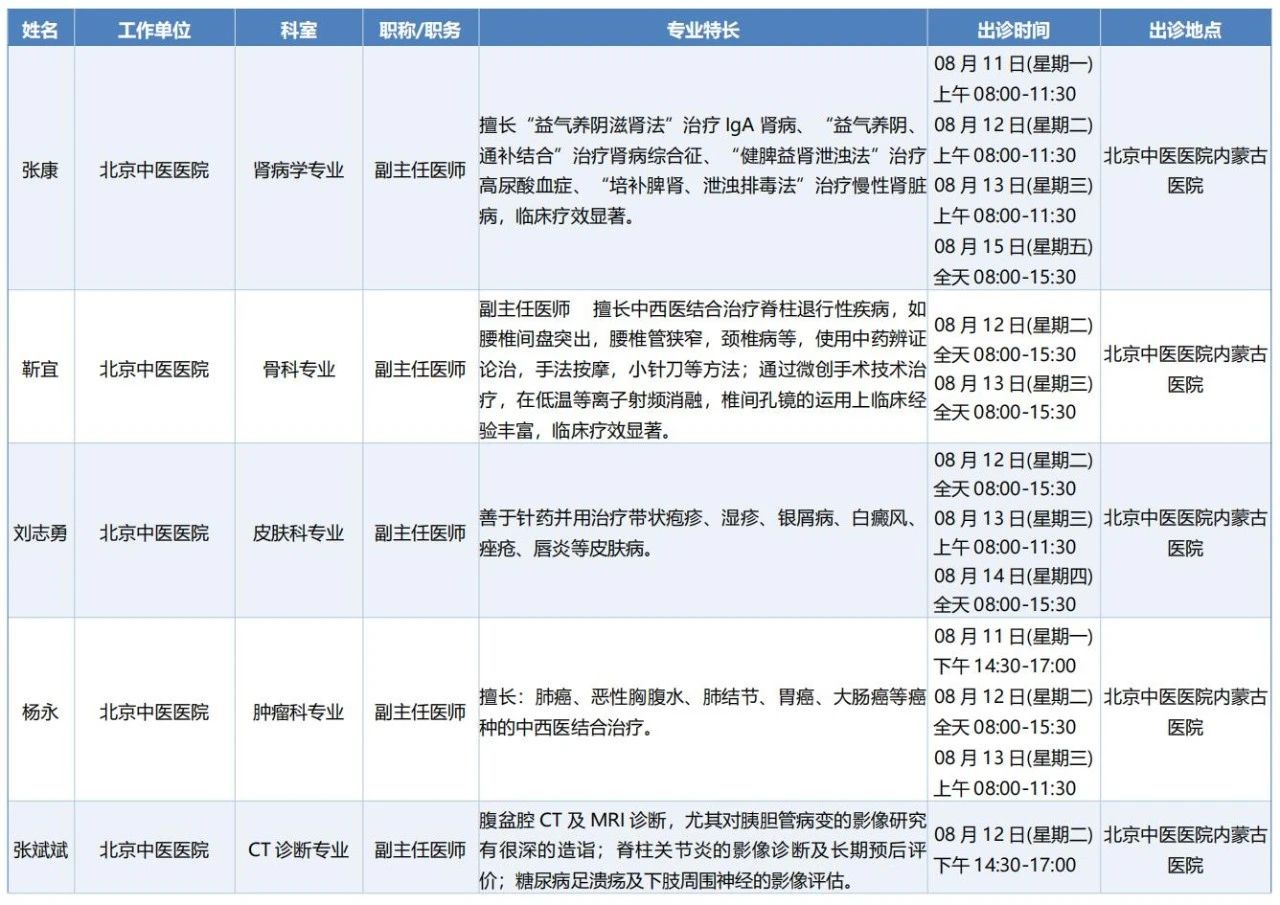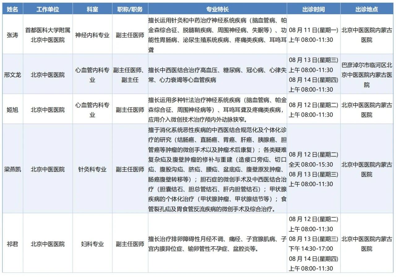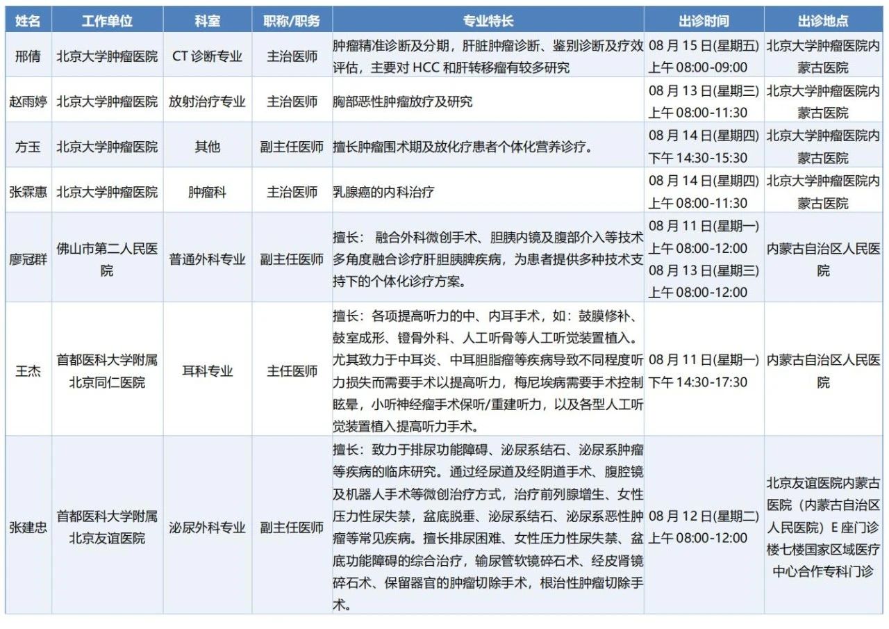 跨区域医疗协作·内蒙古引进优质医疗资源专家诊疗信息。现将本周出诊专家信息予以发布。