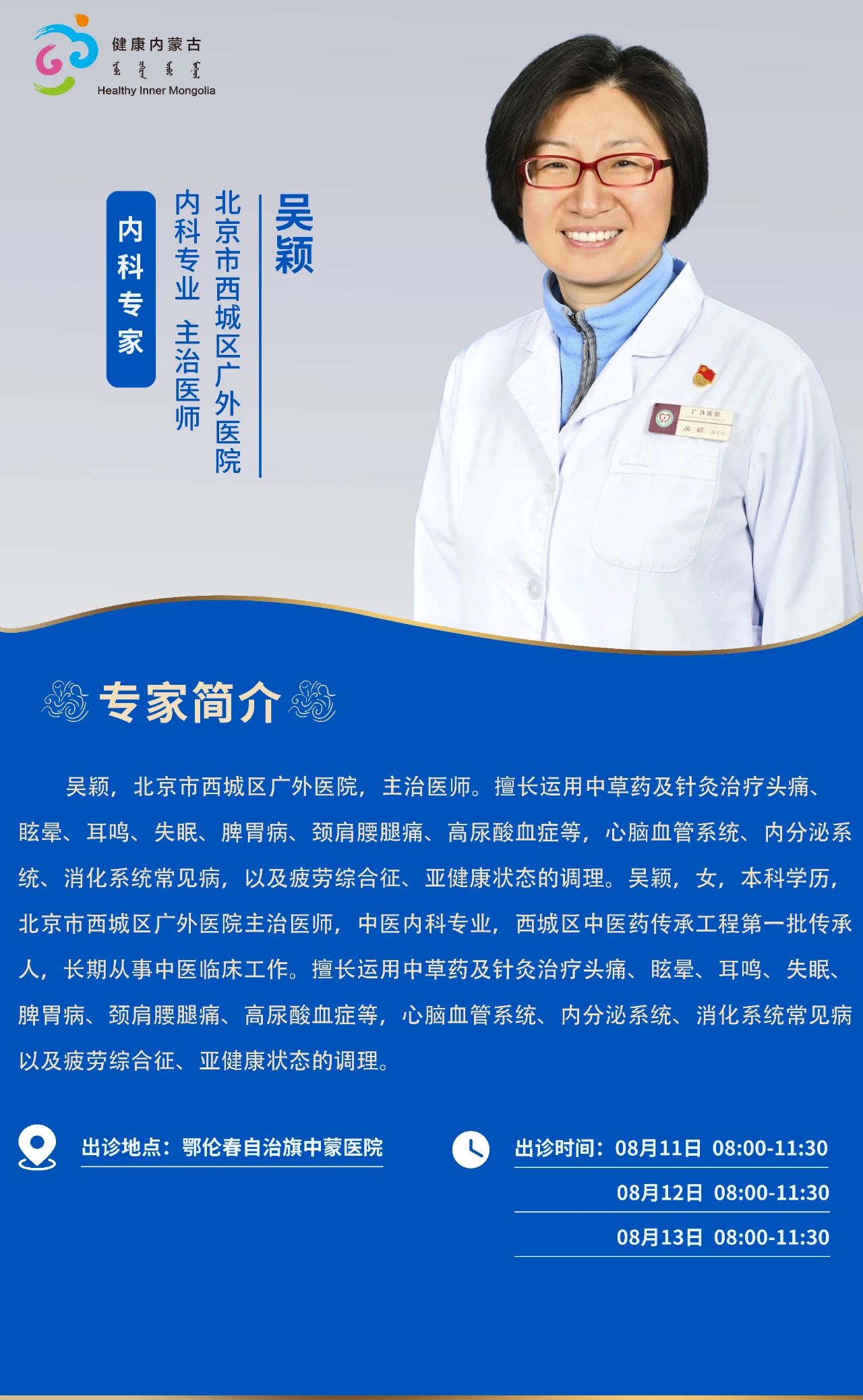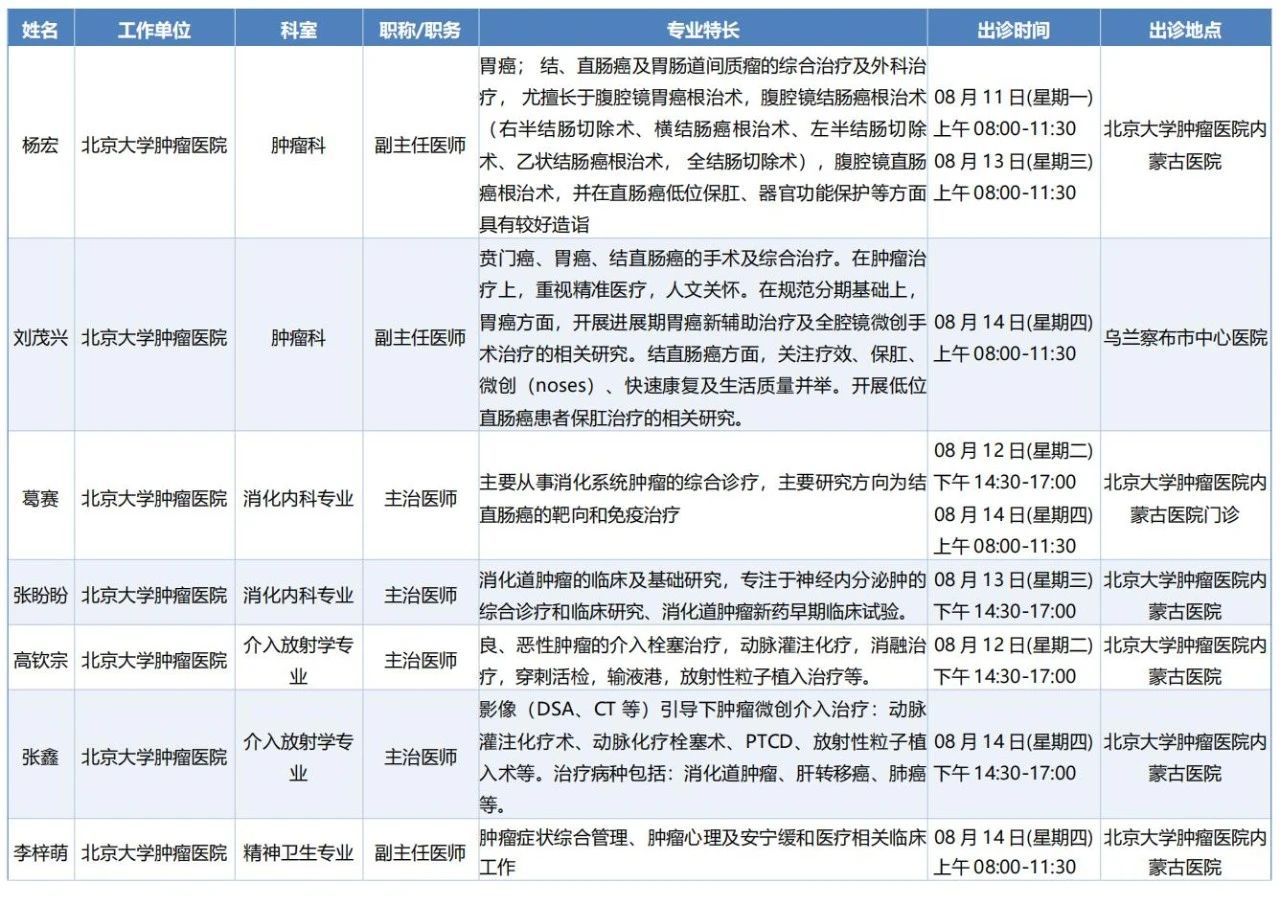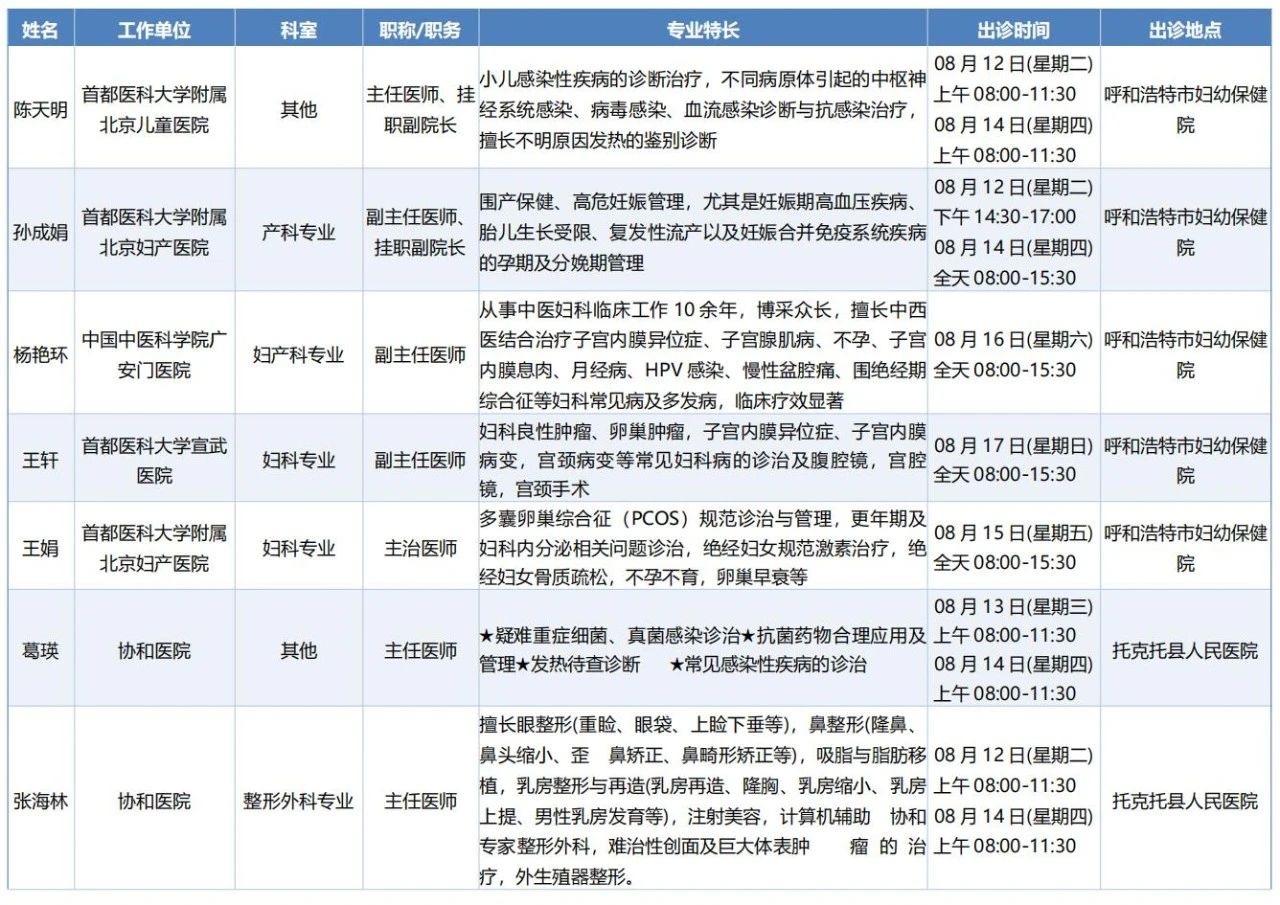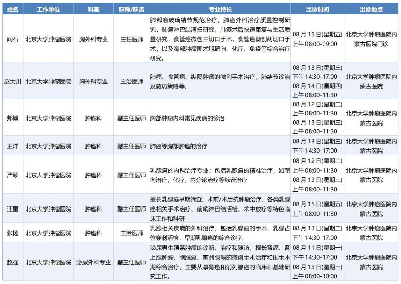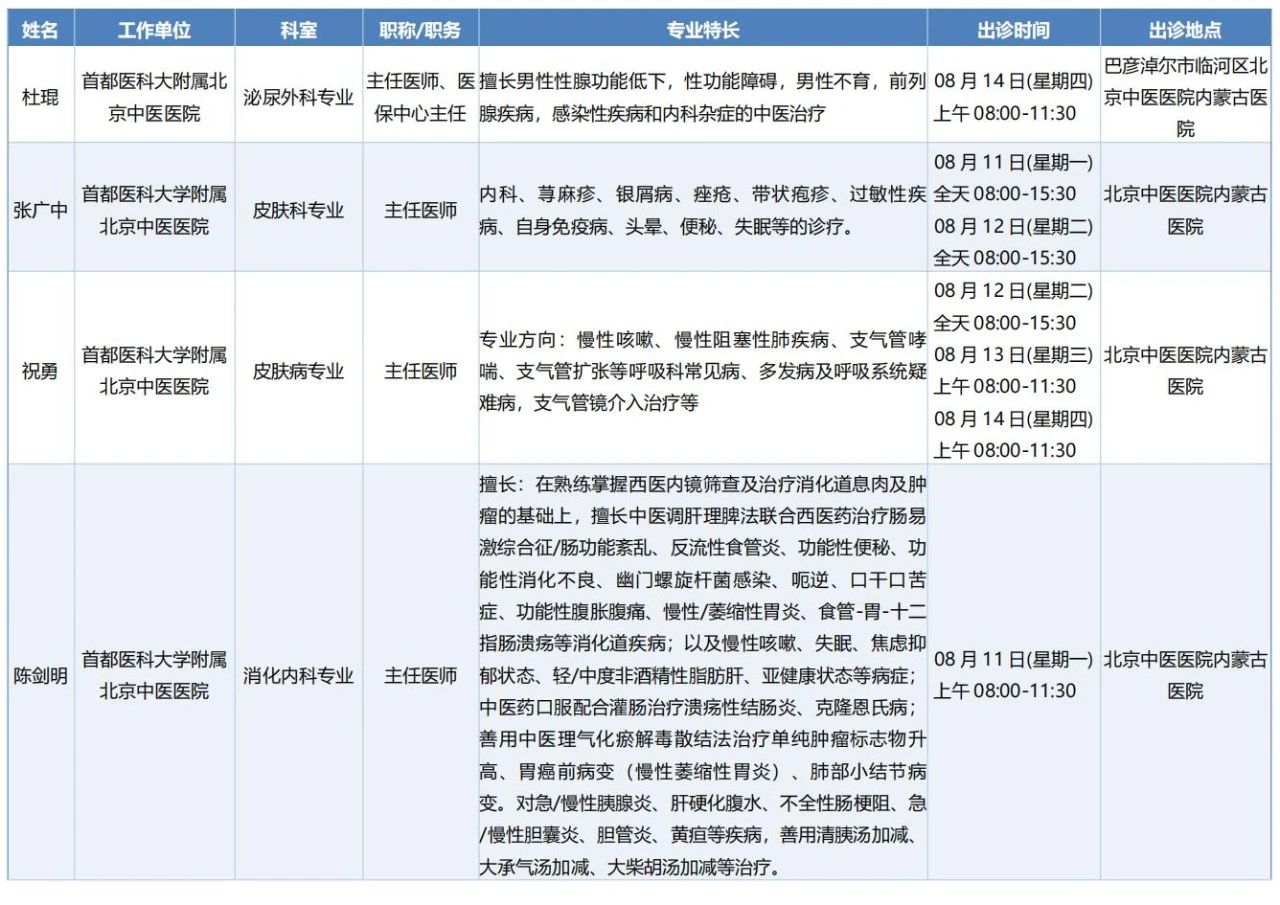 跨区域医疗协作·内蒙古引进优质医疗资源专家诊疗信息。现将本周出诊专家信息予以发布。