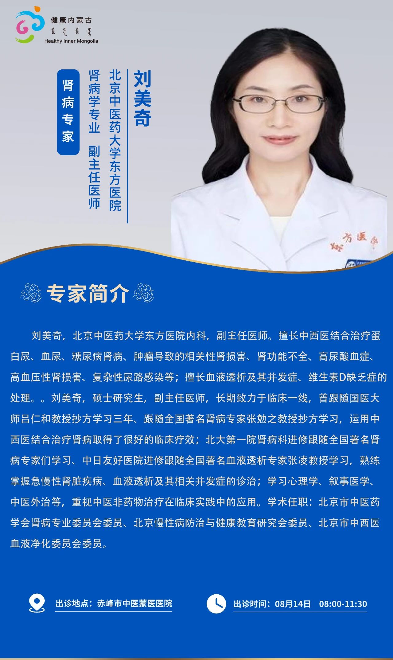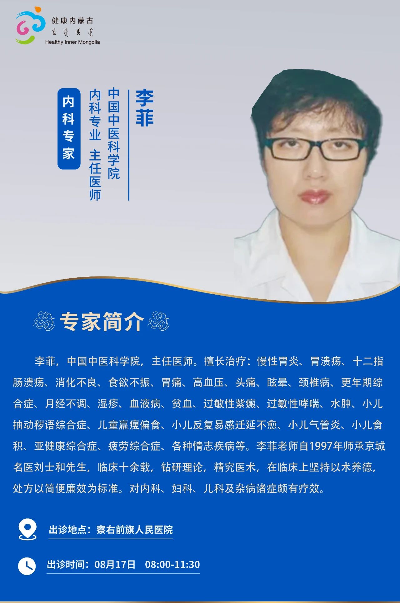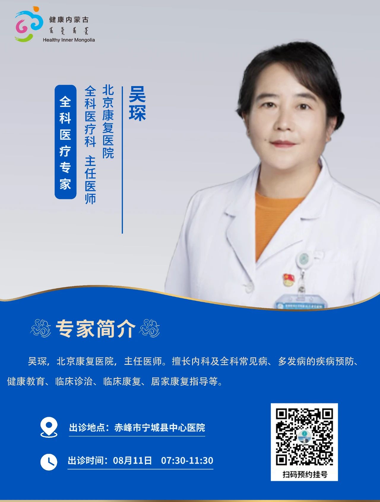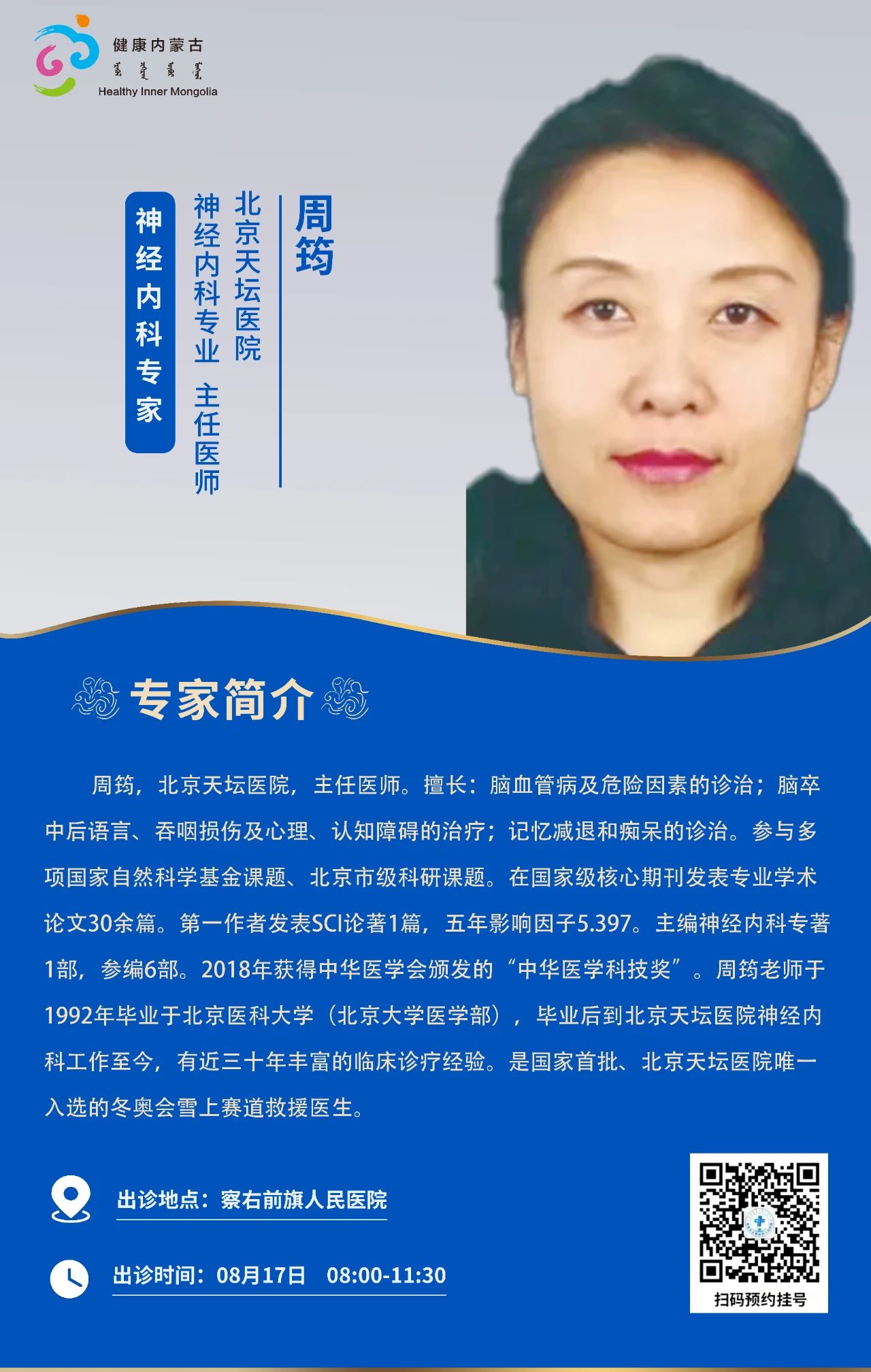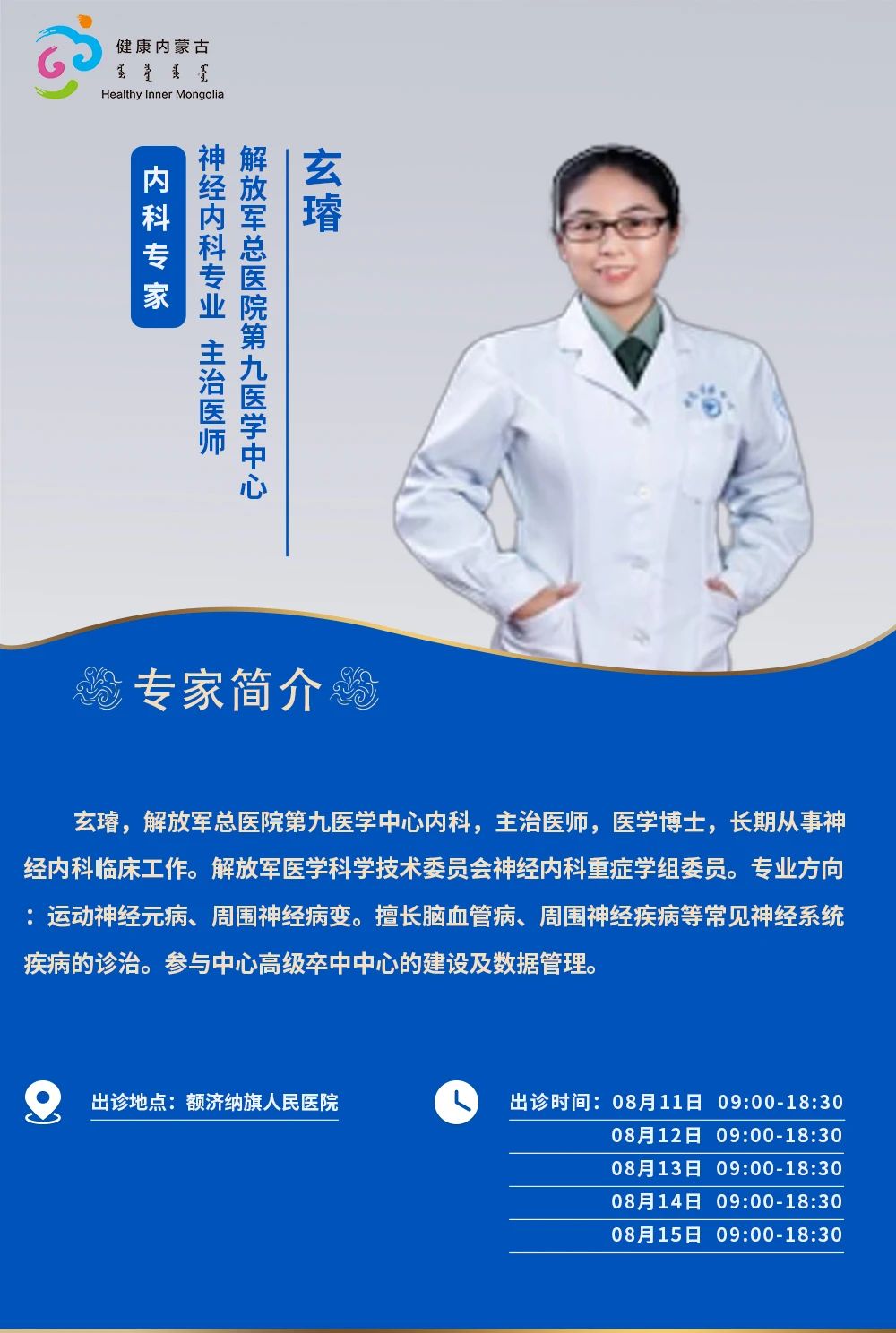 跨区域医疗协作·内蒙古引进优质医疗资源专家诊疗信息。现将本周出诊专家信息予以发布。