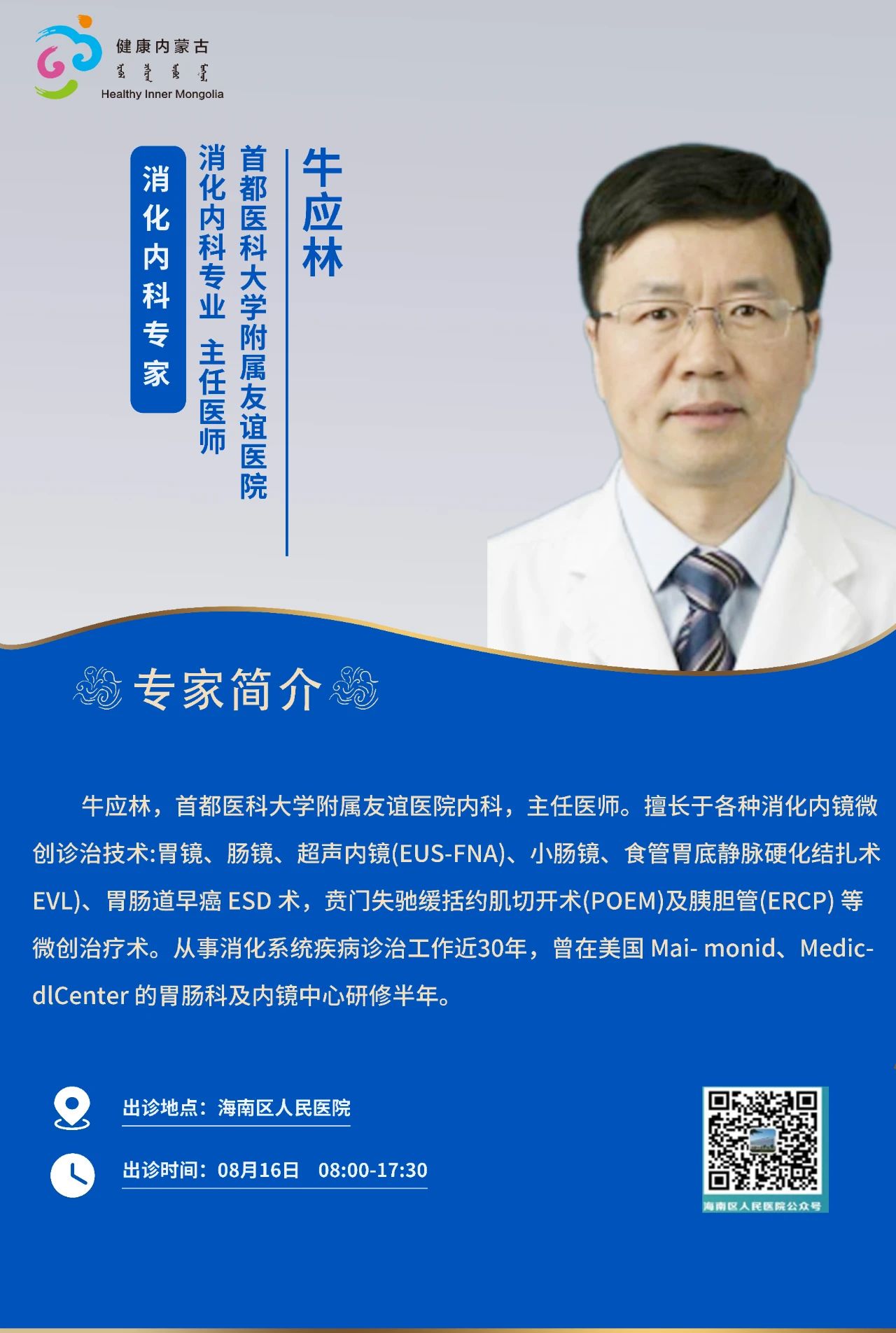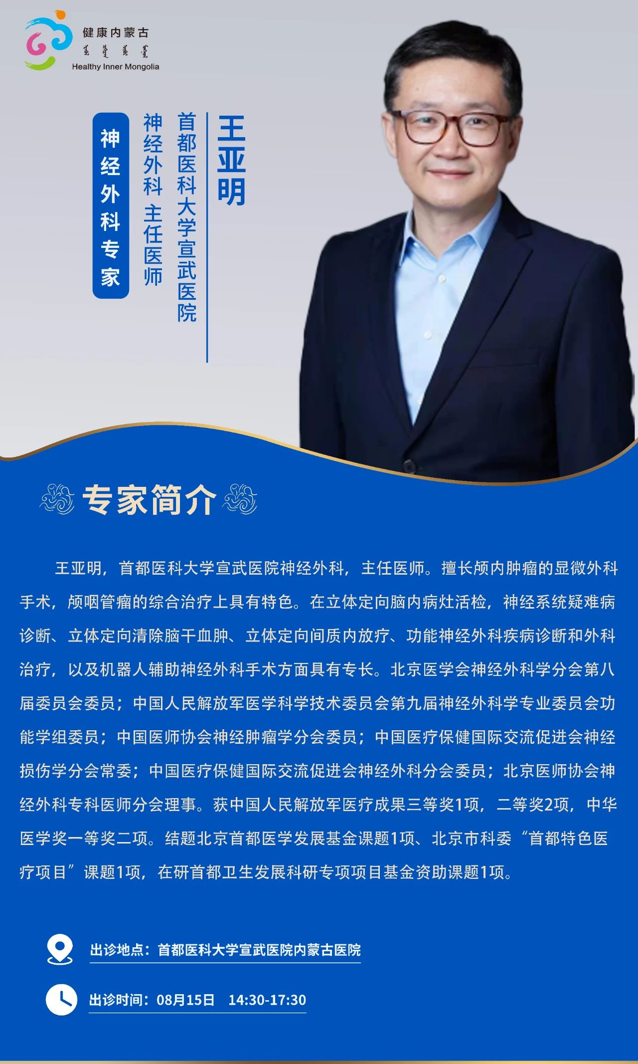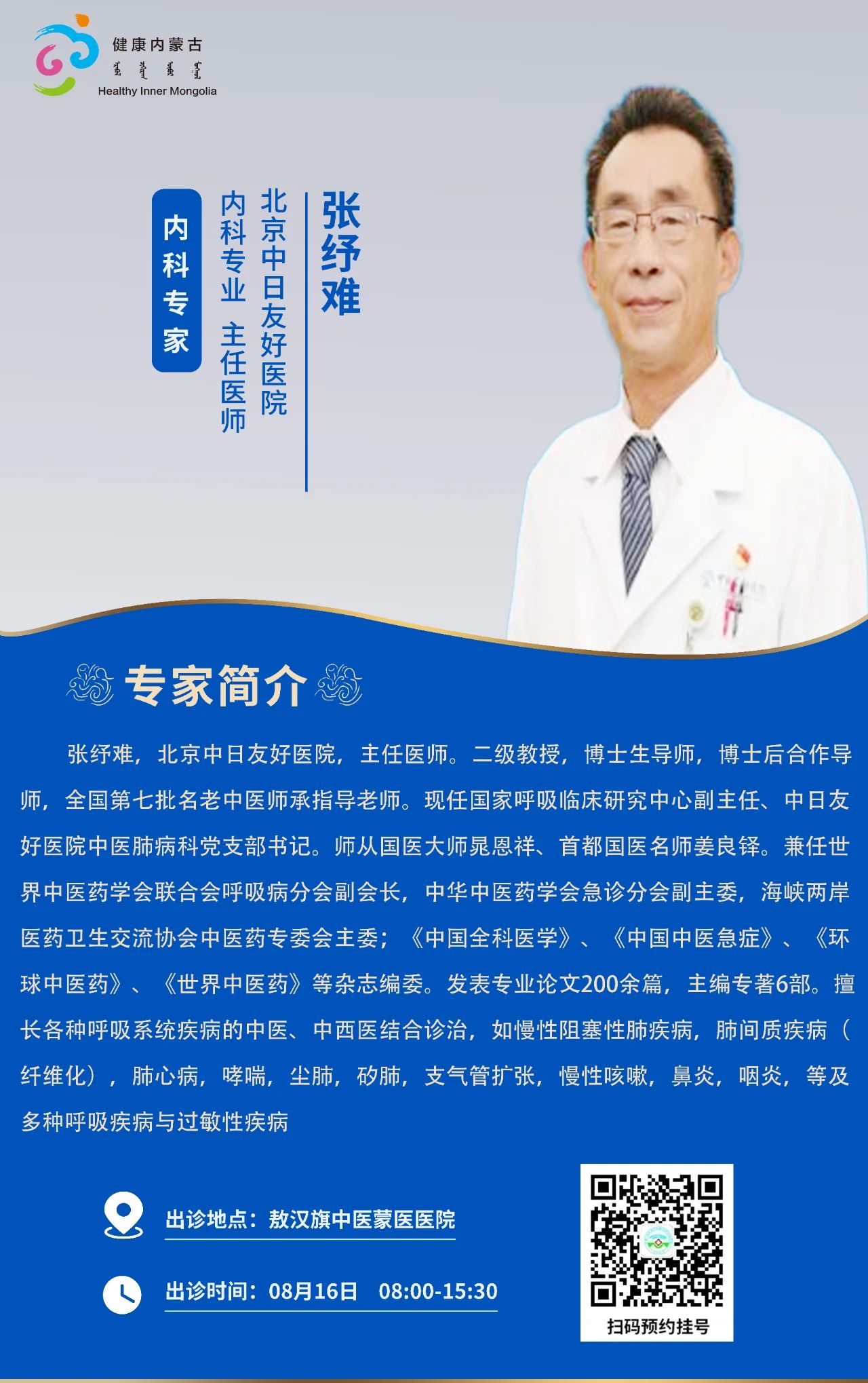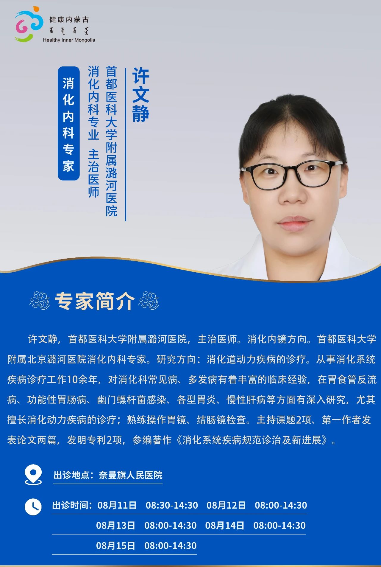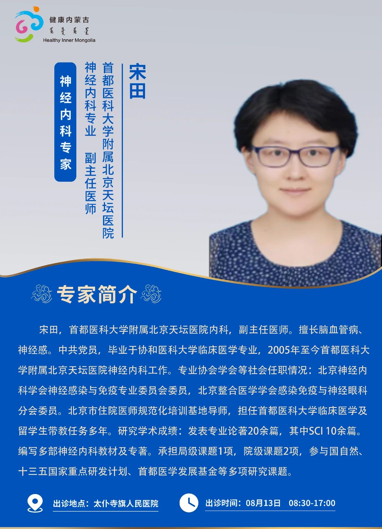 跨区域医疗协作·内蒙古引进优质医疗资源专家诊疗信息。现将本周出诊专家信息予以发布。