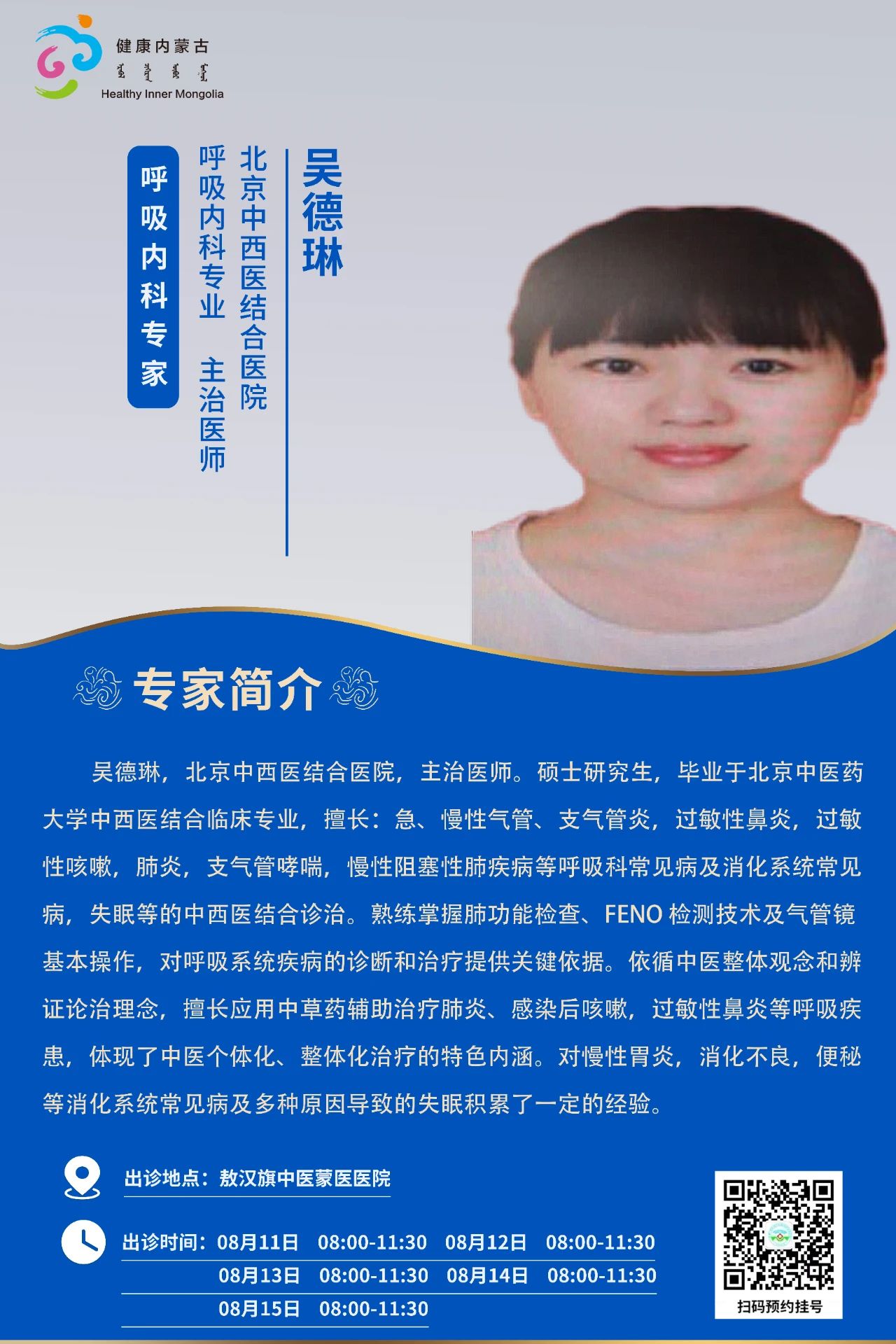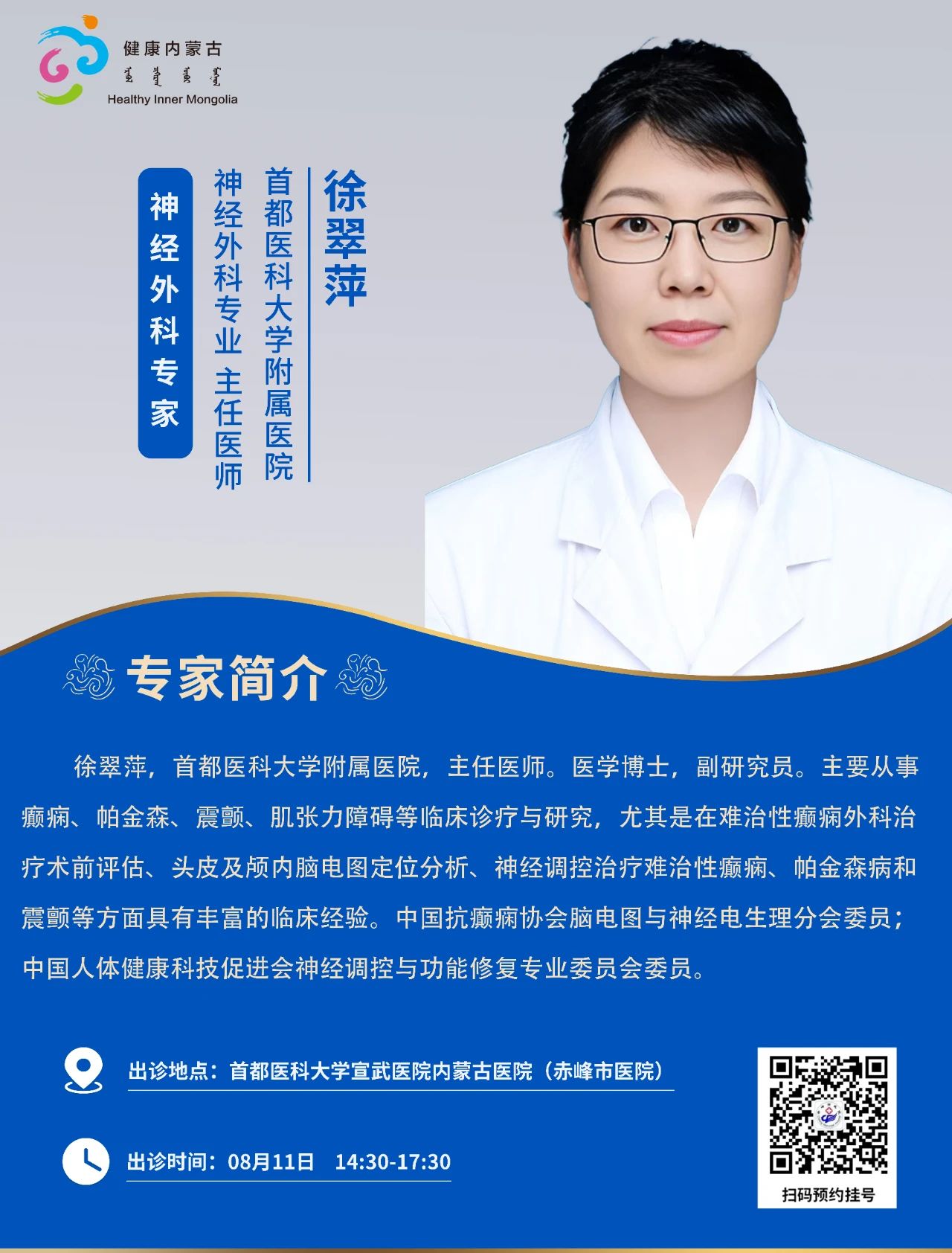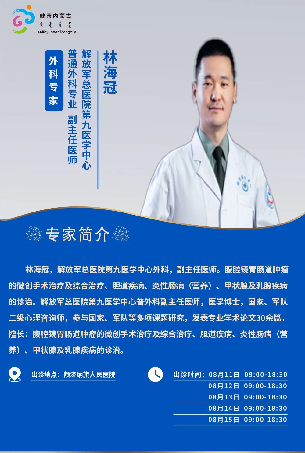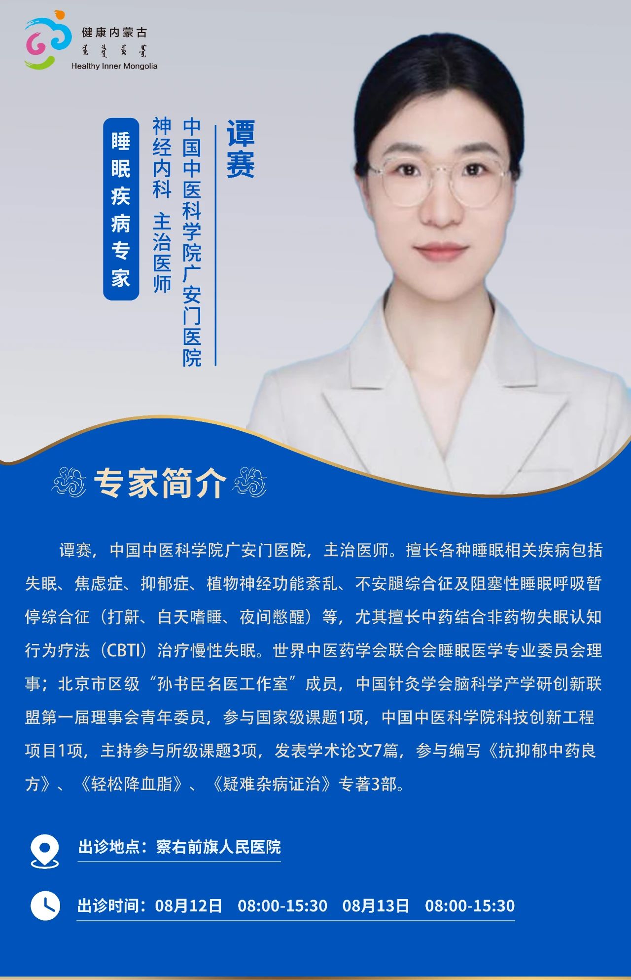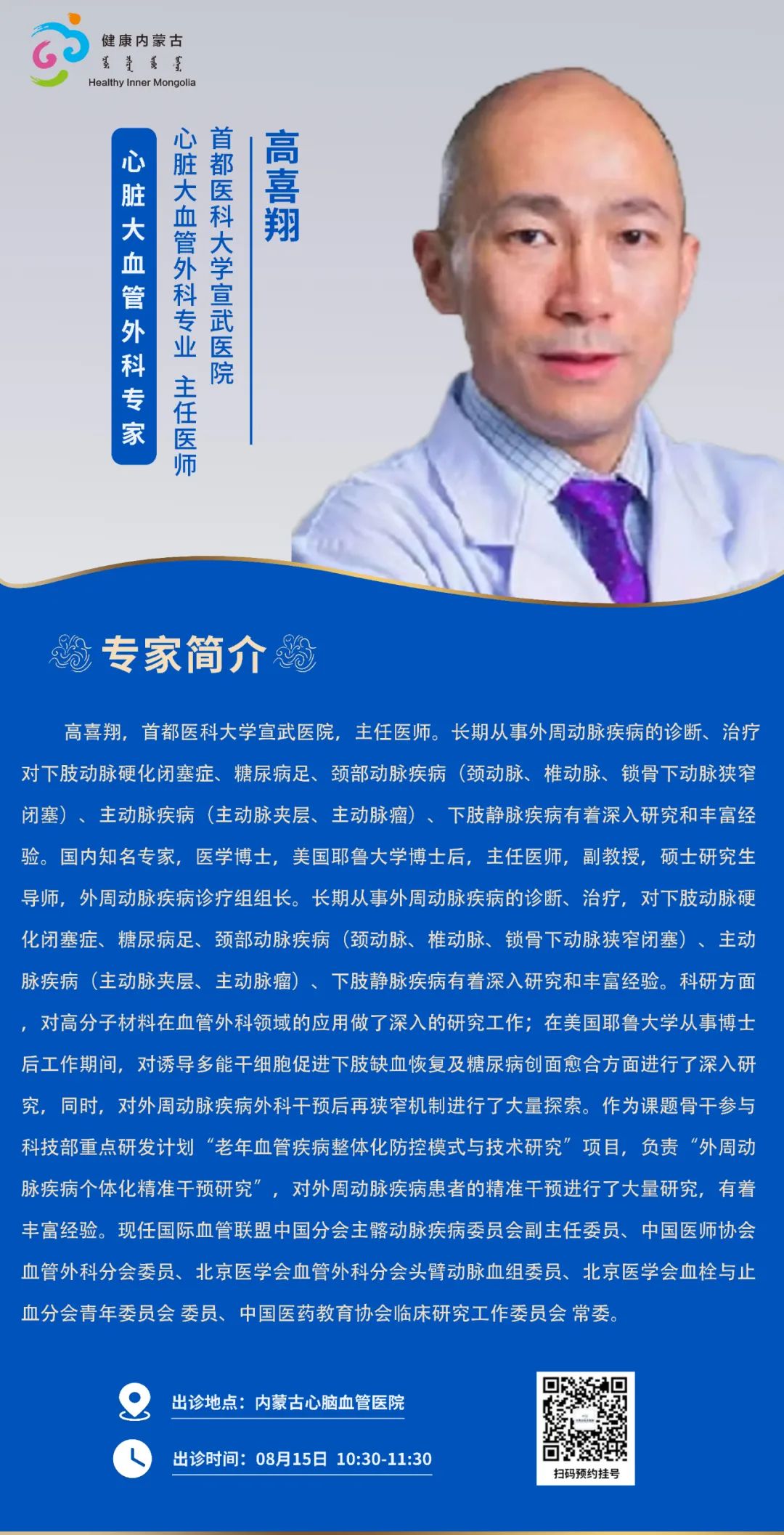 跨区域医疗协作·内蒙古引进优质医疗资源专家诊疗信息。现将本周出诊专家信息予以发布。